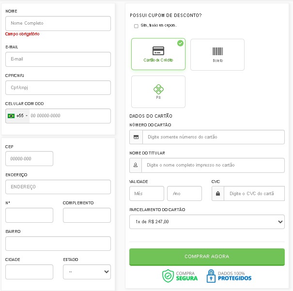 Selecione o kit e clique em "Comprar Agora" Irá para o Checkout, o da imagem abaixo.